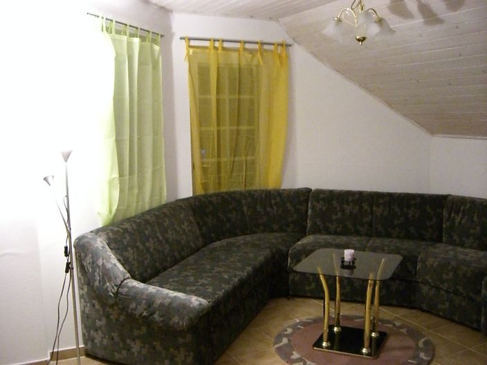Apartment 2: Obergeschoss bestehend aus: - 2 Schlafzimmer - 1 Wohnzimmer - 1 Essraum - 1 Kochnische - 1 Badezimmer mit WC - 1 Balkon alle Zimmer sind eingerichtet, Wohnzimmer mit Satelliten-TV