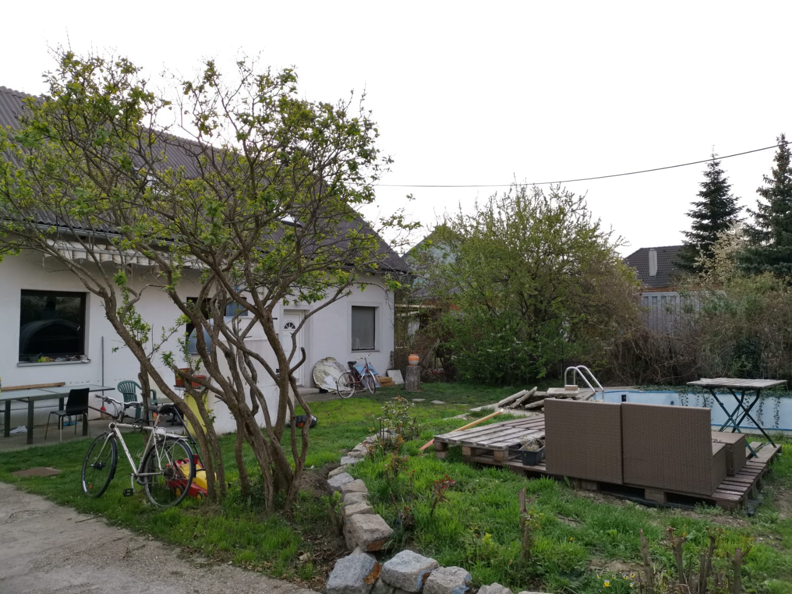 Erdgeschoss mit Wohnzimmer, Küche, Bad, WC, 1 Einzelzimmer, Garage: